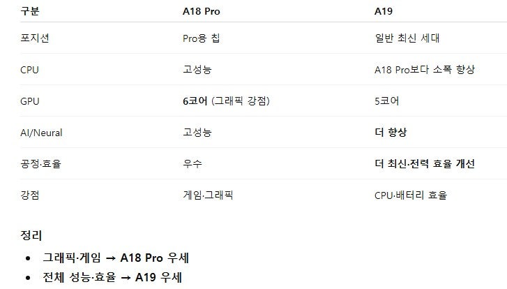 아이폰16프로 칩셋은 Apple A18 Pro 이고 아이폰17 칩셋은 Apple A19 입니다